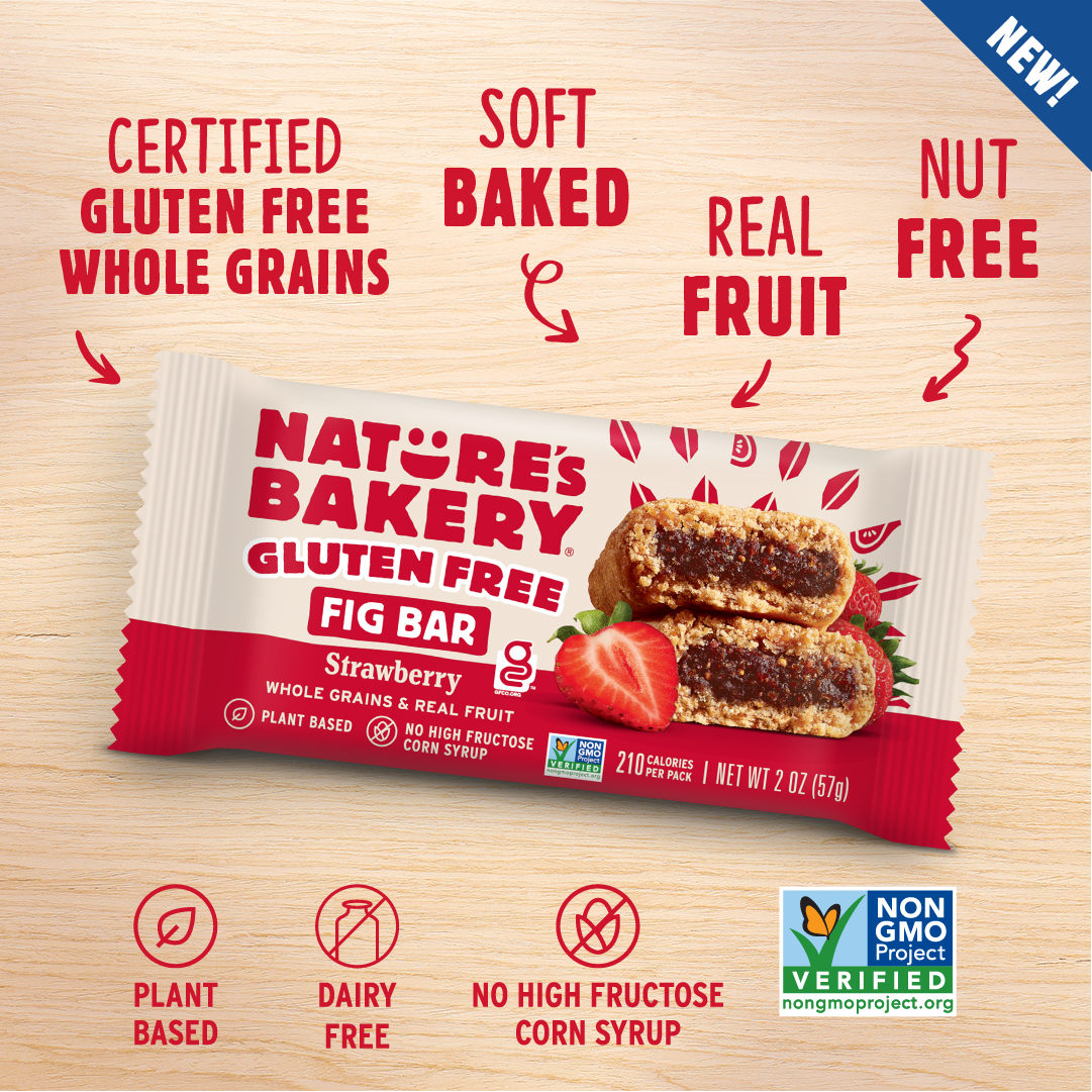Our classic, soft baked Fig Bar—without the gluten! These real fruit-filled snack bars are perfect for lunchtime, snack time—or anytime. Plant based, dairy-free, nut-free, and 100% delicious!
